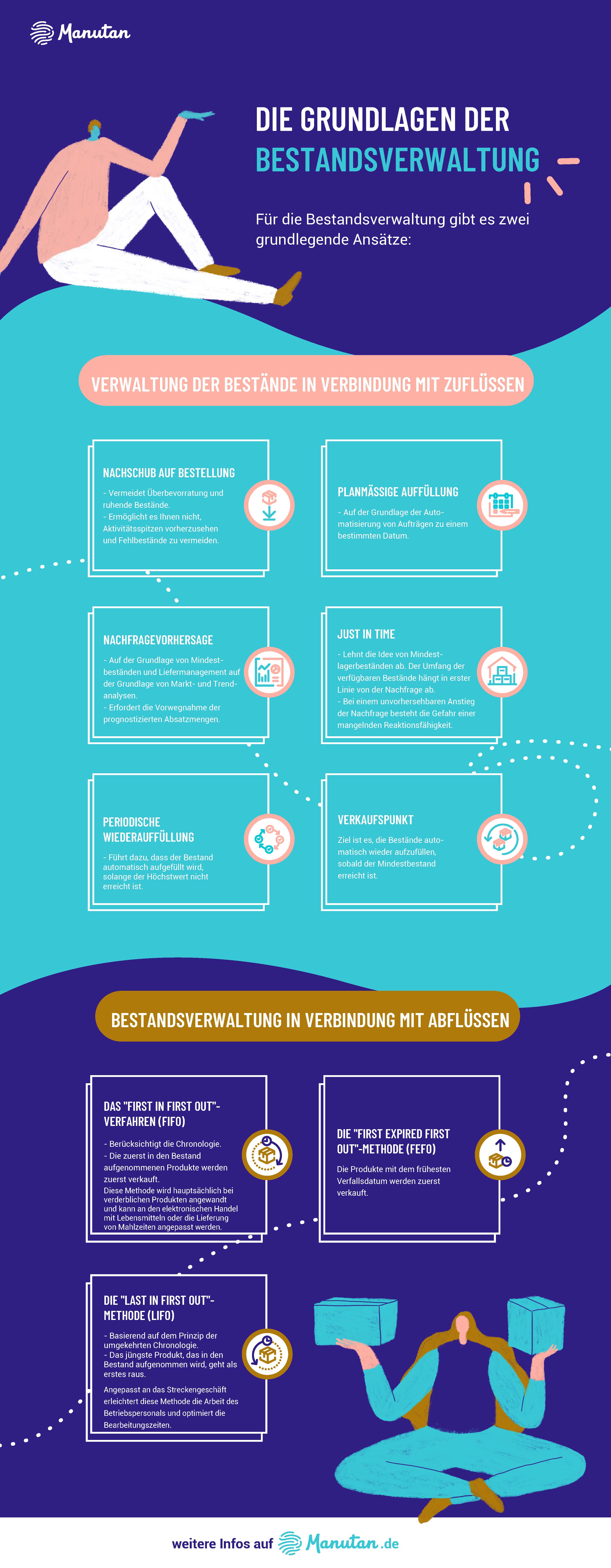 Diese Methoden und Instrumente des Beschaffungsmanagements gelten für Entnahmen, die aus dem Bestand getätigt werden. Nach der Entnahme aus dem Lager werden die Waren als Teil der Produktionskette verwendet oder an Kunden versandt.