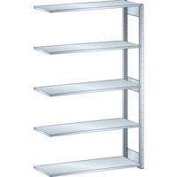 Regal aus verzinktem Stahl, hochstabil und sehr robust Schneller und einfacher Aufbau: schraubenfreie Montage von Gestell und Fachboden Der Fachboden kann bei Bedarf ganz einfach in 25-mm-Schritten verstellt oder entfernt werden Widerstandsfähig, ideal für die Werkstatt