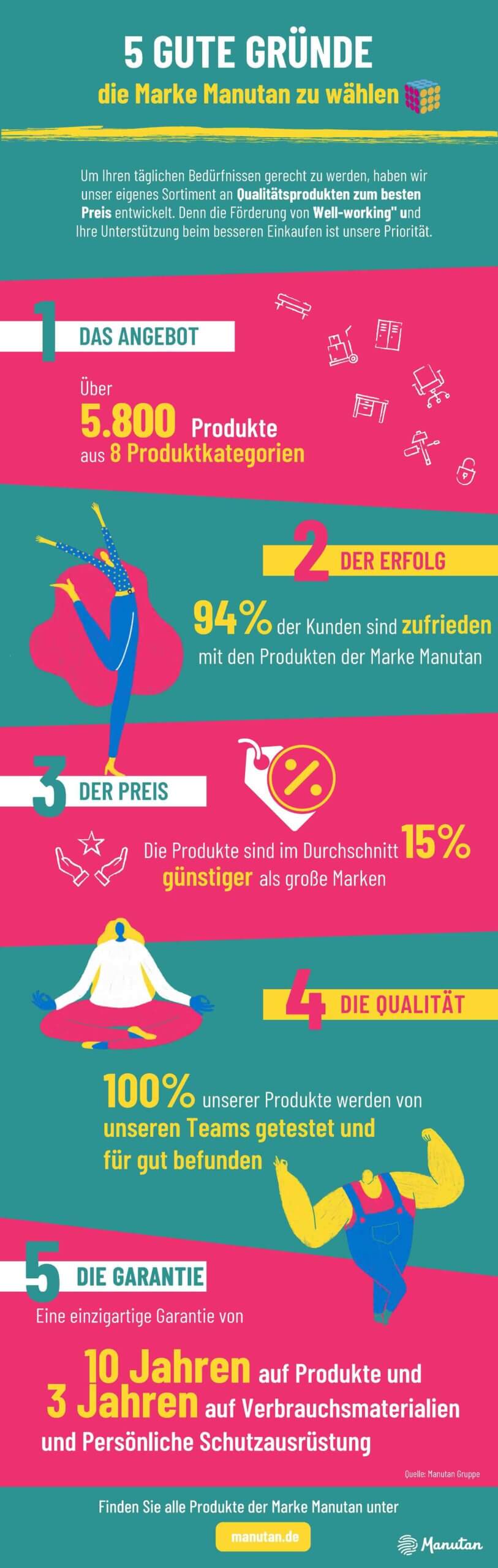 Manutan ist eine französische Marke und ein verantwortungsbewusstes Unternehmen, das sich um die Lösung der Probleme seiner Kunden bemüht. Es arbeitet täglich daran, Fachleuten, Unternehmen und lokalen Behörden hochwertige Produkte zum besten Preis anzubieten, damit sie „gut arbeiten“ können.