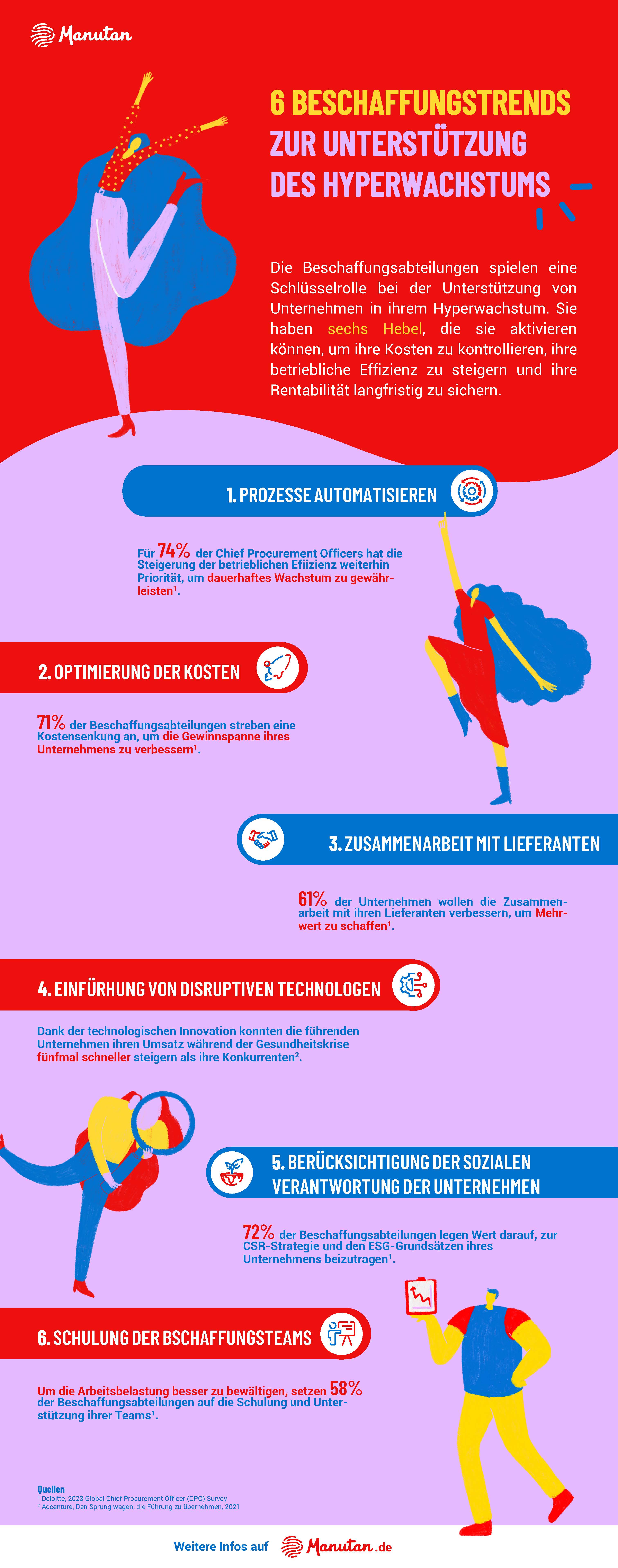 Um ein wachstumsstarkes Unternehmen zu unterstützen, müssen die Beschaffungsabteilungen eine ganze Reihe von Hebeln aktivieren, von der Automatisierung der Beschaffungsprozesse bis zur Schulung der Teams.