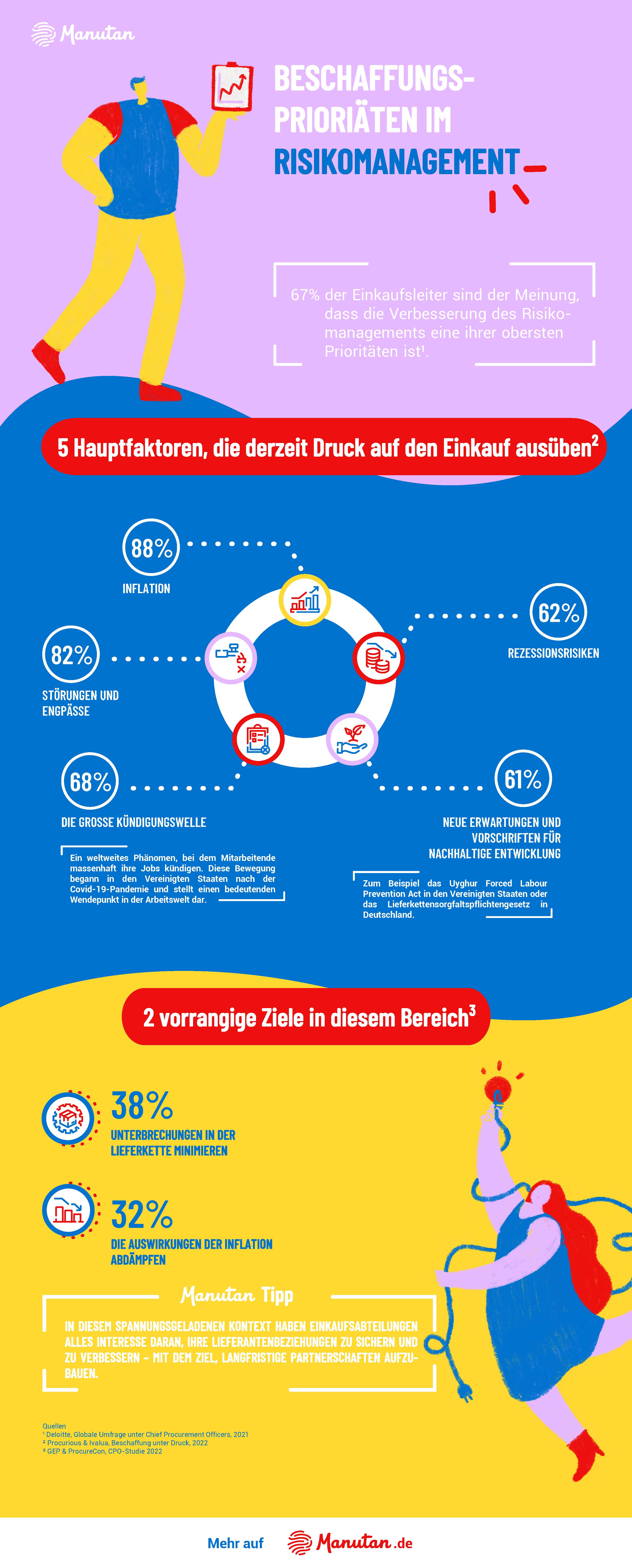 Mit zunehmender Komplexität und Umfang von Lieferketten nehmen auch die Risiken exponentiell zu. Laut der neuesten Umfrage der Beratungsgesellschaft Deloitte steht die Verbesserung des Risikomanagements daher ganz oben auf der Prioritätenliste der Einkaufsleiter. Sie haben daher keine andere Wahl, als das Risikomanagement in ihre Beschaffungsstrategie zu integrieren.