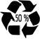 Diese beiden Symbole sollen den Verbraucher über den prozentualen Anteil an recycelten Rohstoffen informieren, die bei der Herstellung der Verpackung oder des Produkts, auf dem sie angebracht sind, verwendet wurden.