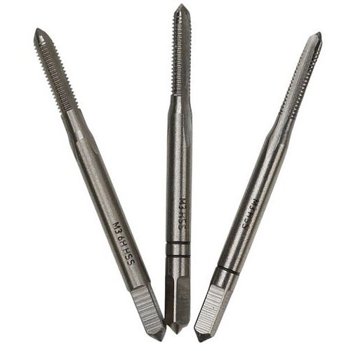 - Handgewindebohrer aus geschliffenem Stahl (HSS).