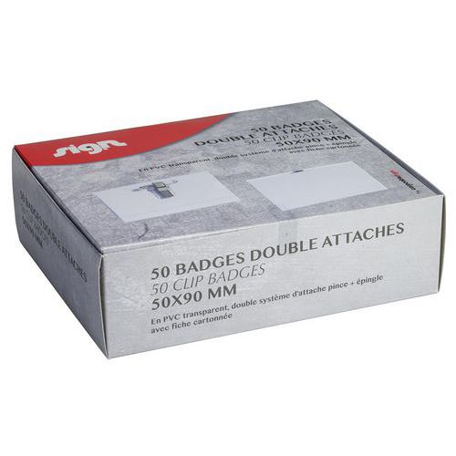 | Produktname | 50 Namensschilder mit doppelter Klemme - Transparent - Sign |