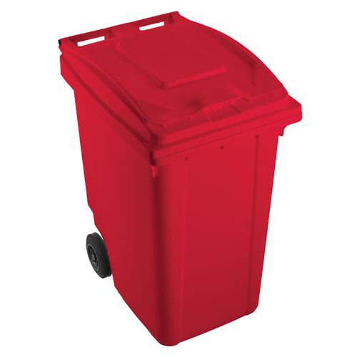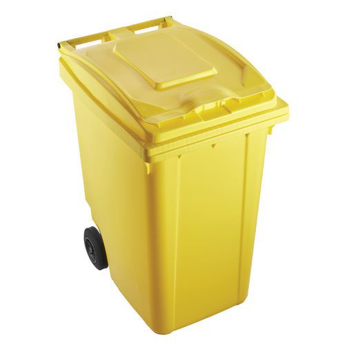 Leiser Container durch den Deckel-Schalldämpfer, der sich geräuschlos schließt. Der Abfallbehälter entspricht der DIN-Norm EN 840. Aus Niederdruck-Polyethylen, robust und langlebig. Beständig gegenüber Temperaturschwankungen und chemischen Produkten. Großes Volumen, geringes Gericht. 2 Räder mit Gummibereifung. Schalldämpfung des Deckels.