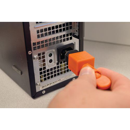 Die abnehmbare Lockout-Vorrichtung für IEC-Stecker bietet einen wirksamen Manipulationsschutz für Büroausrüstung, Computer, Peripheriegeräte und Netzteile. Einfach zu bedienen: Schließen Sie das Gerät einfach an die Steckdose an und drehen Sie es, um die Stromzufuhr zur Steckdose zu blockieren.