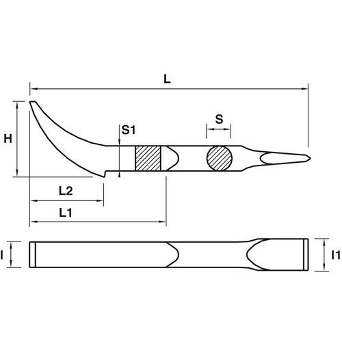 - Achteckig oder rund mit krummer und spitzer Schneide.