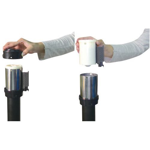 Gurtpfosten mit einer großen Farbauswahl für die Gurtbänder Viele Kombinationsmöglichkeiten bei bis zu 3 Gurtbändern pro Pfosten Befestigung an einem Pfosten oder einer Wandhalterung Einfügen von Pfosten zwischen der Gurtabsperrung möglich