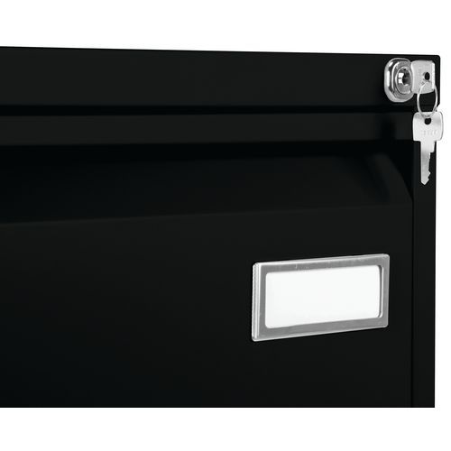 Dank der Kippsicherung können Sie immer nur eine Schublade öffnen. Der Griff über die gesamte Vorderseite bietet Ihnen jederzeit eine sichere Handhabung. Klassischer Hängeregistraturschrank für Akten in den Formaten A4, Folio und Großfolio. Das Produkt verfügt über eine Basis für jede Schublade. Die Maximallast beträgt 30 kg Der Container lässt sich mit dem enthaltenen Schlüssel absperren (1 Satz à 2 Schlüssel). Consigli di sicurezza: - installare il mobile su una superficie piana - fissarlo su una parete o parete divisoria con un fissaggio adeguato - assicurarsi di non superare il carico massimo consigliato e la sua corretta distribuzione - prodotto di bloccaggio in grado di sostenere 50 cartelle sospese .