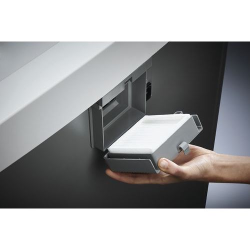 | Produktname | Aktenvernichter CleanTec - 140 Liter - Dahle, Blattkapazität (Blätter A4/80 g): 35, Inhalt Behälter: 140 L |