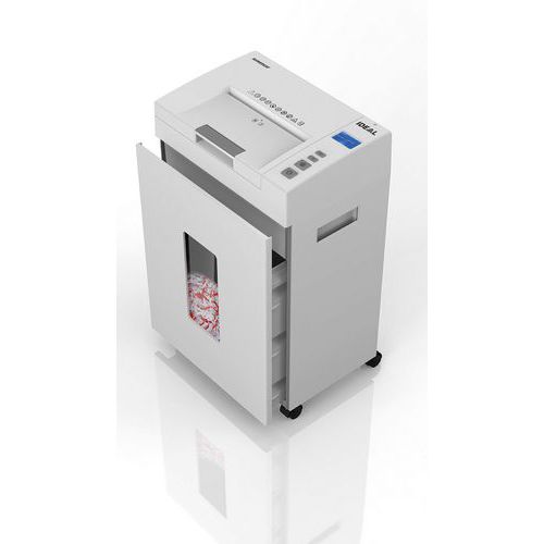Aktenvernichter mit Zuführautomatik für bis zu 200 Blatt Manuelle Zufuhr für bis zu 10 Blatt Sicherheitsstufe P-4 (Kreuzschnitt 4 x 10 mm) Benutzerfreundliches Bedienfeld mit LCD-Anzeige Automatischer Start/Stopp durch Sensor Abnehmbarer Behälter mit Sichtfenster und einem Fassungsvermögen von 26 Litern Geeignet für Papier mit Heftklammern und für Magnet- oder Chipkarten Kompakt und leise Gestell auf Rollen