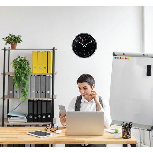 | Produktname | Analoge Wanduhr, funkgesteuert, Ø 40 cm, Uhranzeige: Analog (Nadel), Form: Rund, Farbe: Anthrazit |