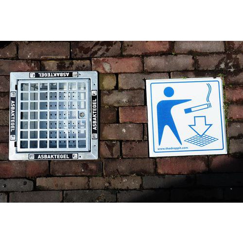 Aschenbecherfliese, robust, aus verzinktem Stahl.