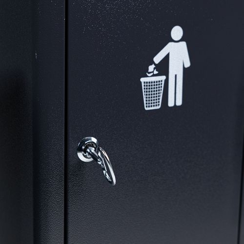 - Der Ascher-Abfallbehälter ist für mehr Sicherheit mit einem Schloss ausgestattet.