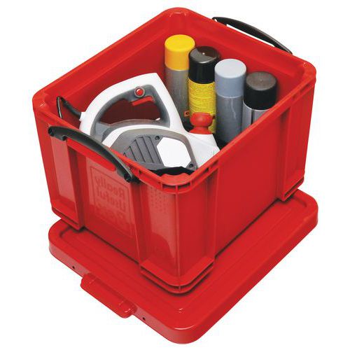 Rasches Erkennen des Inhalts dank transparentem Behälter. Rundum verstärkt für besseren Widerstand gegen Belastung und Quetschen. Behälter derselben Größe sind mit oder ohne Deckel stapelbar. Inhalt gegen Staub und Feuchtigkeit geschützt. Einfacher Transport durch breite Griffe. Bereiche für selbstklebende Etiketten.