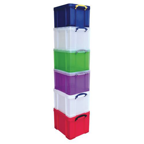 Rasches Erkennen des Inhalts dank transparentem Behälter. Rundum verstärkt für besseren Widerstand gegen Belastung und Quetschen. Behälter derselben Größe sind mit oder ohne Deckel stapelbar. Inhalt gegen Staub und Feuchtigkeit geschützt. Einfacher Transport durch breite Griffe. Bereiche für selbstklebende Etiketten. Hergestellt in UK Max. Belastung (kg) : 80 kg Kundengarantie : 3 Jahre
