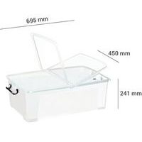 Robuster Kunststoffbehälter mi vier verstärkten Wänden. Konische Form für perfektes Stapeln. Einfacher Zugriff von den Seiten durch doppelten Klappdeckel. Behälter mit effizientem Verschluss und zwei robusten, ansteckbaren Griffen. Hergestellt in UK Kundengarantie : 5 Jahre