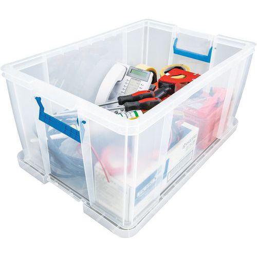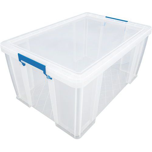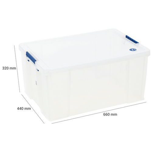 Solider und sehr stabiler Lagerbehälter. Praktisch und dank der Griffe leicht zu transportieren. Aufgrund der durchsichtigen Wände ist schnell erkennbar, was darin lagert.