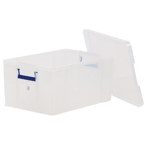 Solider und sehr stabiler Lagerbehälter. Praktisch und dank der Griffe leicht zu transportieren. Aufgrund der durchsichtigen Wände ist schnell erkennbar, was darin lagert. Hergestellt in UK Max. Belastung (kg) : 200 kg NSF zertifiziert