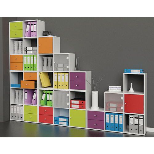 Stellen Sie sich einen Schrank zusammen, der genau für den Bereich geeignet ist, in dem Sie ihn einsetzen wollen Fügen Sie Schubladen und/oder Türen (optional erhältlich) zu den Modulen hinzu Ideale per separare gli spazi o fornire spazio di archiviazione sotto una scala, una finestra o una soffitta