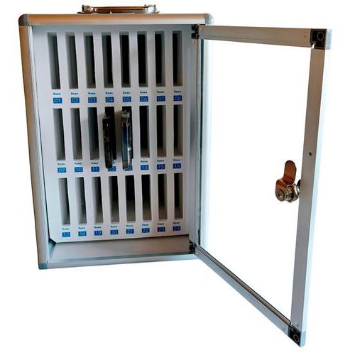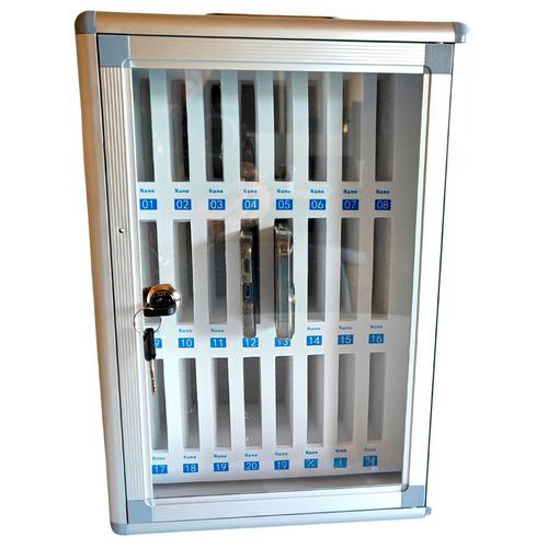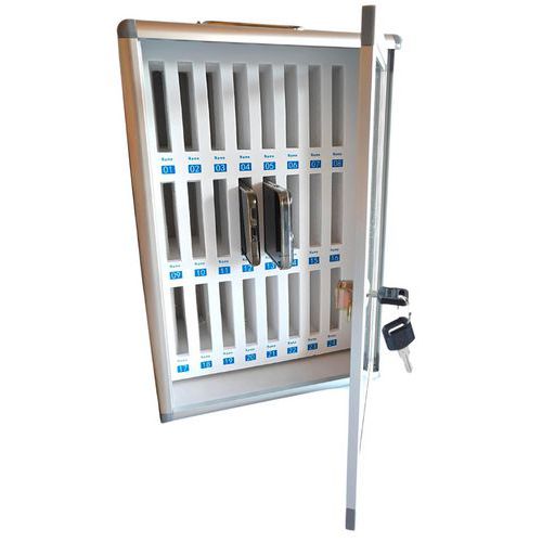 | Produktname | Aufbewahrungsschrank für Mobiltelefone Mobisafe, Anzahl Fächer: 24, Breite: 26.5 cm, Tiefe: 19 cm |
