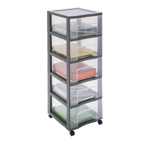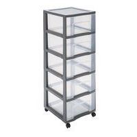 | Produktname | Aufbewahrungsturm Kunststoff XL Tag Tower, 5 Schubladen, grau, Rückenbreite: 37 cm, Werkstoff: Polypropylen |