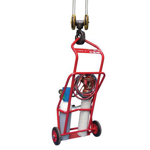 | Produktname | Aufhängbare Flaschenkarre aus Stahl, 100 kg - Gummireifen, Max. Belastung: 100 kg, Max. Ø Gasflasche: 210 mm |