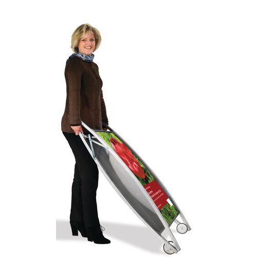 | Produktname | Aufsteller Boston, Für Format: A1, Farbe: Grau, Höhe: 115 cm, Breite: 72 cm, Nutzbare Tiefe Fach: 70 cm |