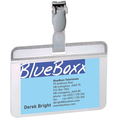 | Produktname | Badge-Halter laminierbar, Farbe: Grau, Befestigungstyp: Clip, Länge: 90 mm, Höhe: 54 mm, Werkstoff: PVC |
