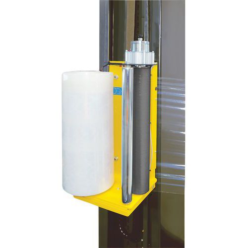 - Halbautomatischer Banderolierer zum Verpacken von Paletten mit Dehnfolie.