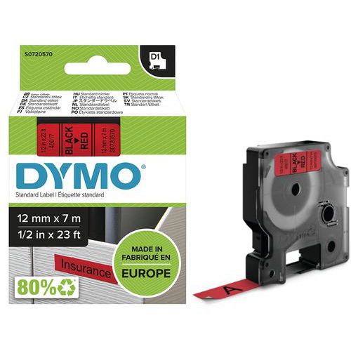 Bandkassette D1, Breite 12 mm - Dymo, Brett Farbe: Rot, Typ: 45017, Länge Band: 7 m, Für Modell: LP100 à 350 Bandkassette D1, Breite 12 mm - Dymo, Brett Farbe: Rot, Typ: 45017, Länge Band: 7 m, Für Modell: LP100 à 350