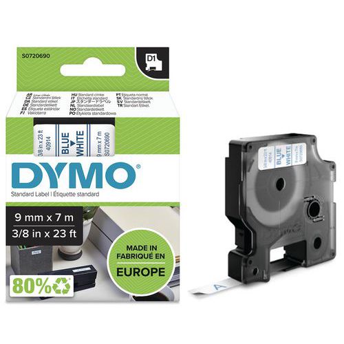 Bandkassette D1, Breite 9 mm - Dymo, Brett Farbe: Weiß, Typ: S0720690, Länge Band: 7 m Bandkassette D1, Breite 9 mm - Dymo, Brett Farbe: Weiß, Typ: S0720690, Länge Band: 7 m