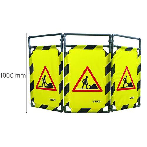 | Produktname | Baustellenabsperrung 3-flügelig „Achtung Baustelle“ 100 x 170 cm, Gesamthöhe: 1000 mm, Pfosten Ø: 25 mm |