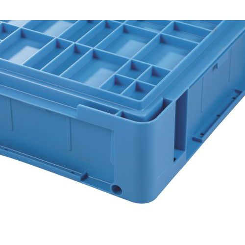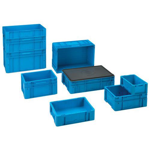 Entspricht Abmessungen nach europäischer Norm. Hohe Stoß- und Stapelfestigkeit durch verstärkte Seiten und Böden und Ecken mit Doppelwand. Eurotec-Behälter mit ergonomischen Griffen. Geeignet zur automatischen Verarbeitung: Roboter, Transportbänder und automatisierter Transport. Einfache Identifizierung durch Etikettenhalter. Kulinarisches Kundengarantie : 3 Jahre