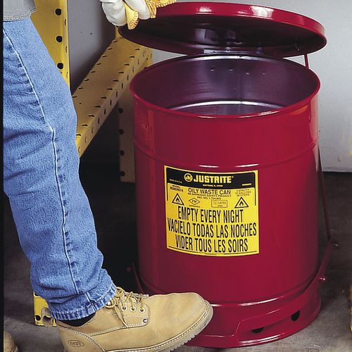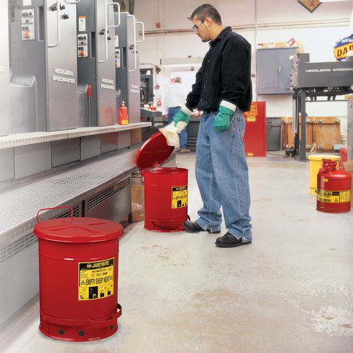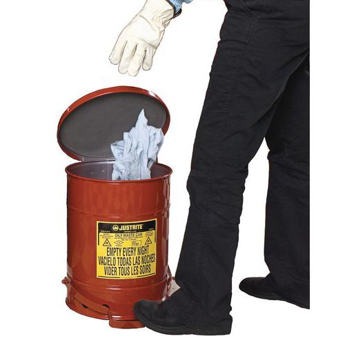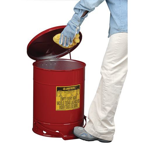 | Produktname | Behälter für ölige Abfälle, rot, 80 L - Justrite, Gesamtinhalt: 80 L, Öffnung: Mit Pedal, Werkstoff: Metall |