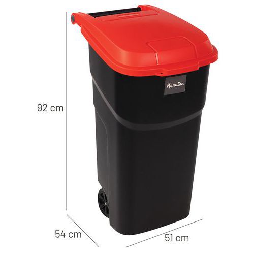 Behälter mit rotem Deckel, 100 L - Manutan Expert, Gesamtinhalt: 100 L, Öffnung: Frontal