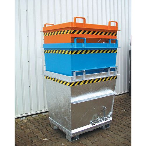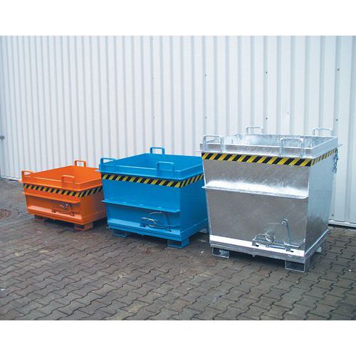 Behälter mit zu öffnendem Boden von Bauer Stabile Struktur mit verstärktem Profil für längere Haltbarkeit Dank der Kompatibilität mit einem Hubwagen oder Kran leicht zu transportieren Einfache und schnelle Öffnung des Bodens per Seil Entleerung in einem Durchgang dank des sich öffnenden Bodens
