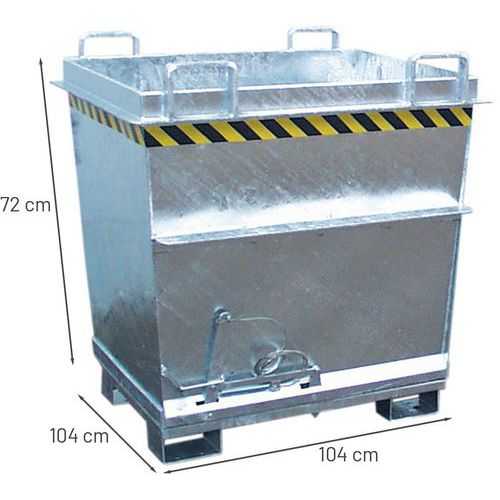Behälter mit zu öffnendem Boden von Bauer Stabile Struktur mit verstärktem Profil für längere Haltbarkeit Dank der Kompatibilität mit einem Hubwagen oder Kran leicht zu transportieren Einfache und schnelle Öffnung des Bodens per Seil Entleerung in einem Durchgang dank des sich öffnenden Bodens