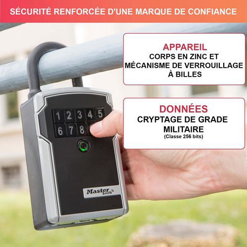 | Produktname | Bluetooth-Schlüsselkasten mit Bügel 5440EURD - Master Lock, Werkstoff: Zink, Gesamthöhe: 14 mm |