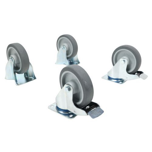 Polyurethan-Bereifung: dämpft Vibrationen, hinterlässt keine Spuren oder Flecken, verschleißfest und beständig gegenüber zahlreichen chemischen Stoffen.