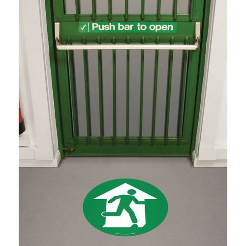 | Produktname | Bodenaufkleber - Notausgang, Selbstklebend: ja, Starr: nein, Norm ISO 7010: nein, Paneel Form: Rund |