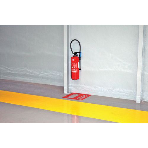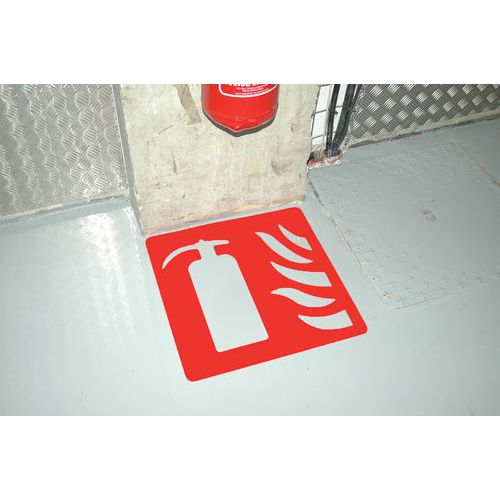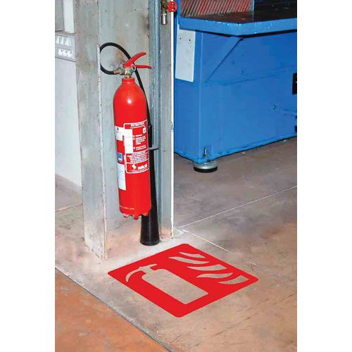 | Produktname | Bodenmarkierung - Feuerlöscher - Gergosign, Werkstoff: PVC, Länge: 480 mm, Breite: 470 mm, Farbe: Rot |