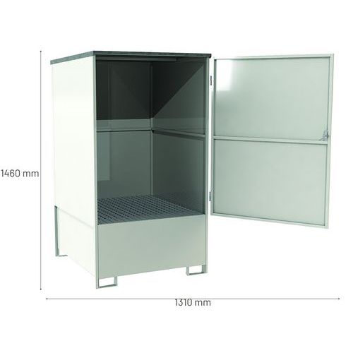 | Produktname | Box mit Auffangwanne aus Metall, 1 IBC, 1000 L - Manutan Expert, Inhalt Auffangbehälter: 1000 L, Farbe: Weiß |