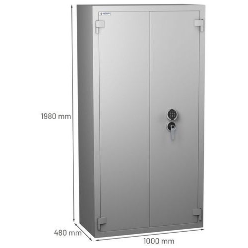 | Produktname | Brandsicherer Tresor, Gesamthöhe: 1980 mm, Gesamtbreite: 1000 mm, Typ Verschluss: Mit Codeschloss |