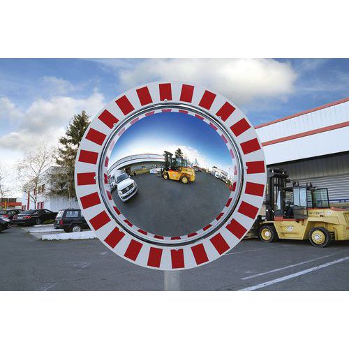 - Robuster, unveränderlicher, UV-beständiger Sicherheitsspiegel mit 180°-Überwachung.