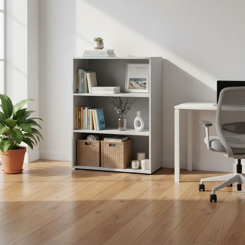 Halbhoher, melaminbeschichteter Bücherschrank, Stärke 18 mm, ABS-Kanten 1 mm.