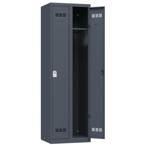 Bürospind mit 2 Säulen. Der moderne Bürospind vereint Qualität, Sicherheit und Design. Im Werk verschweißt und daher garantiert robust. Höchste Aufbruchsicherheit. Consigli di sicurezza: - installare il mobile su una superficie piana - fissarlo su una parete o parete divisoria con un fissaggio adeguato - assicurarsi di non superare il carico massimo consigliato e la sua buona distribuzione