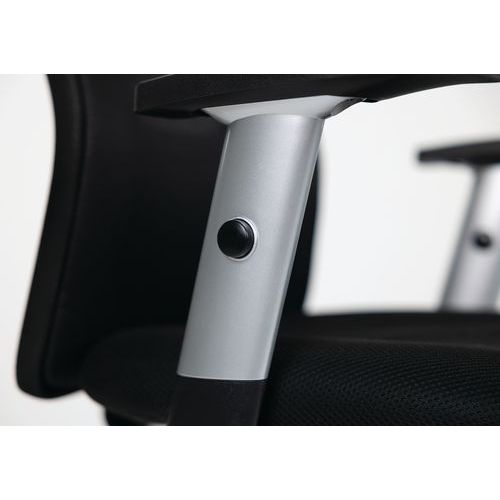 Der Bürostuhl Penelope mit mittlerer Rückenlehne und grauem Untergestell stellt den permanenten Kontakt zwischen Lehne und Rücken sicher Sitzhöhe individuell vom Benutzer verstellbar Anpassbare Höhe der Armlehnen durch den Verriegelungsmechanismus Ideal fürs Homeoffice Sitzschaumdichte von 25 kg/m²