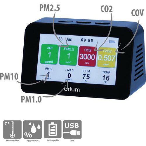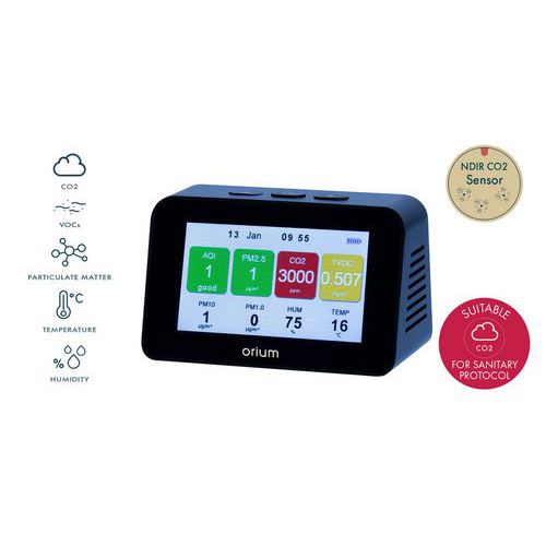 | Produktname | CO2-Messgerät für Innenräume - VOC und Feinstaub - Quaelis 34 - Orium, Wandbefestigung: nein |