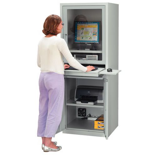 Schützen Sie Ihren Computer in einem ortsfesten verriegelbaren Schrank.